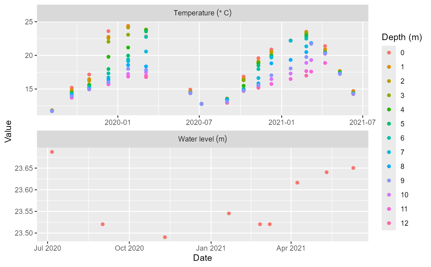 plot_obs(aeme = aeme, var_sim = c("HYD_temp", "LKE_lvlwtr"))