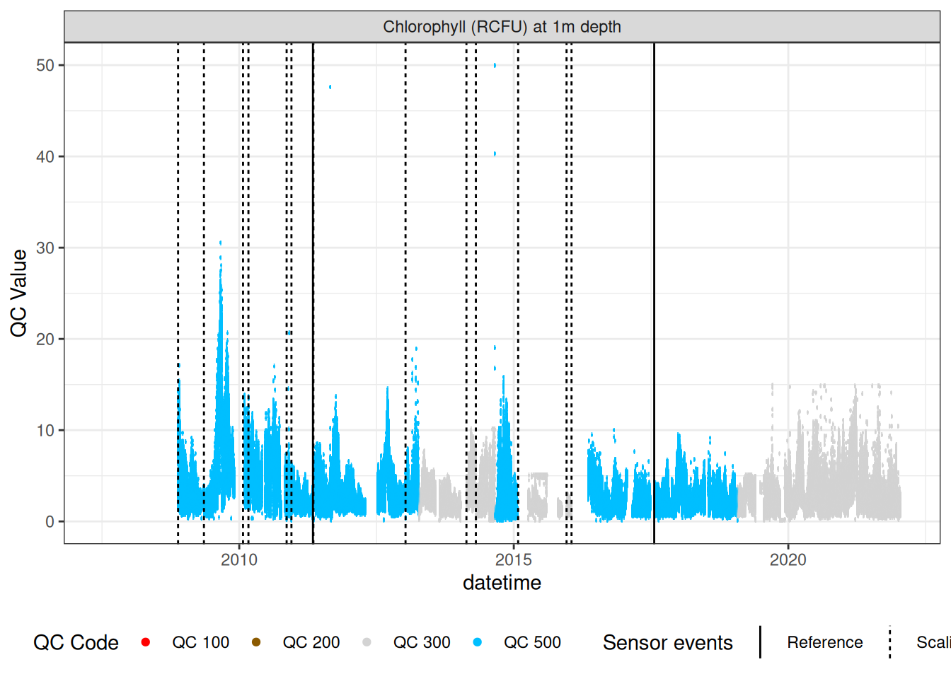 plot_var_ts_qc(data = data, var_ref_id = c("f_chl_d100"))