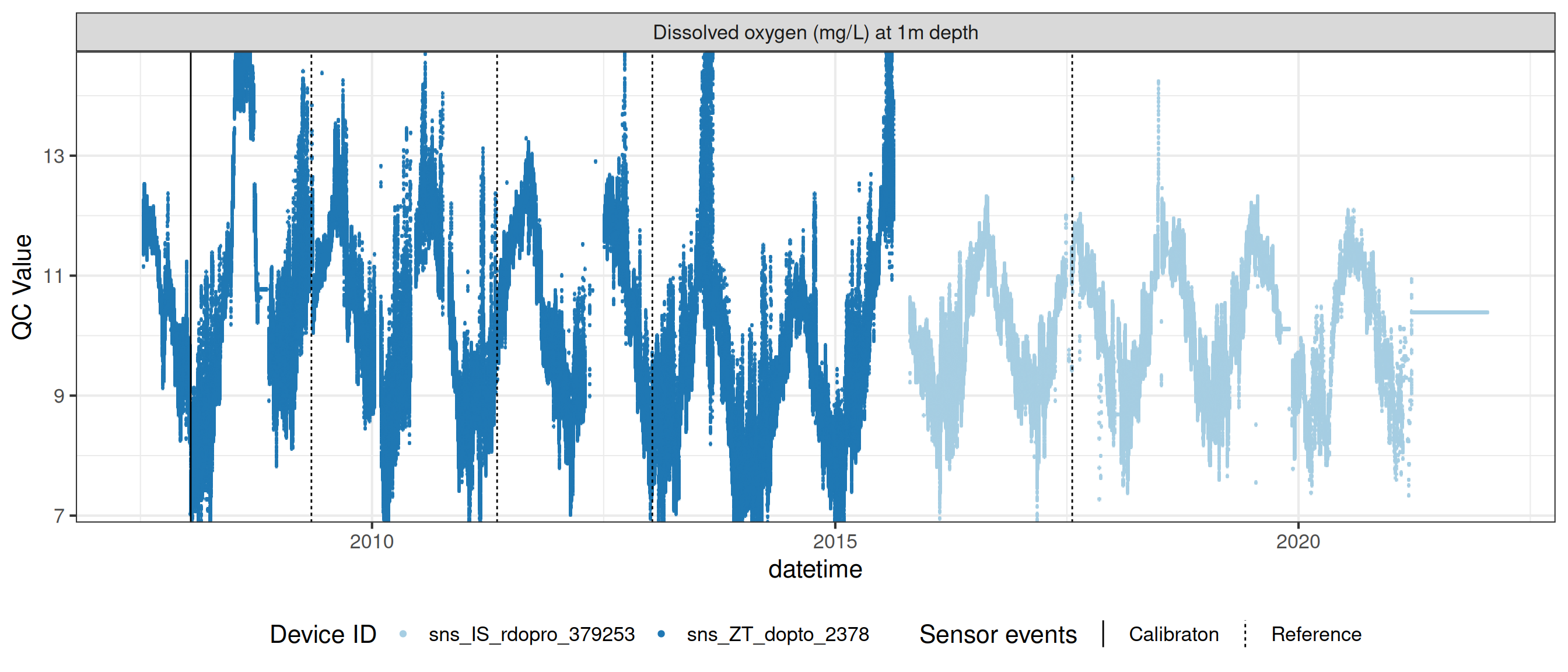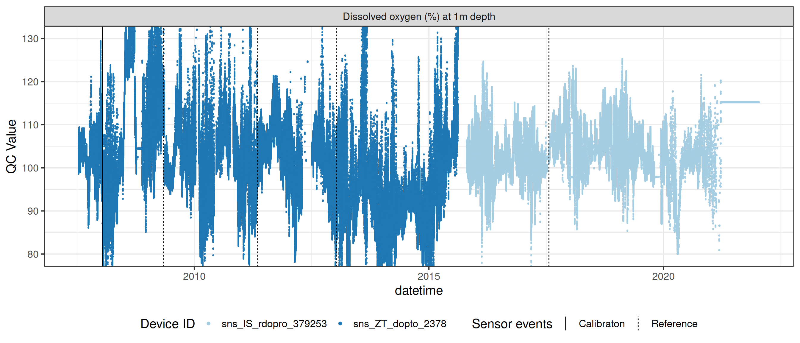 plot_var_ts_qc(data = data, var_ref_id = c("c_do_sat_d100", "c_do_sat_d2000"))